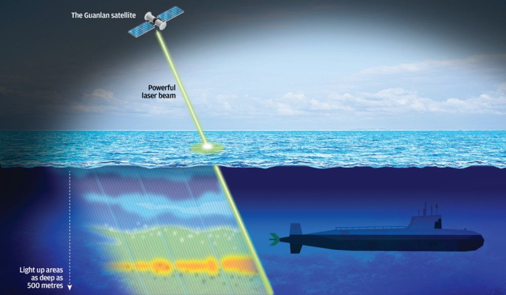 参与该项目的另一位研究人员张廷禄表示,该卫星投射激光的主要目标是温跃层。尽管他拒绝详细说明卫星在反潜战中的作用,但温跃层对潜艇的重要意义已经是公开的事实,因为它可以反射主动声纳和其他声学信号。然而激光可以在这一深度探测潜艇。而“观澜”项目的目标,是使用所有可用的传感方法来实现最大可能的探测深度。张研究员表示,有时可能没有足够的光线达到500米并且返回,但可以尝试通过在较浅的深度进行间接测量,来定位水下目标。