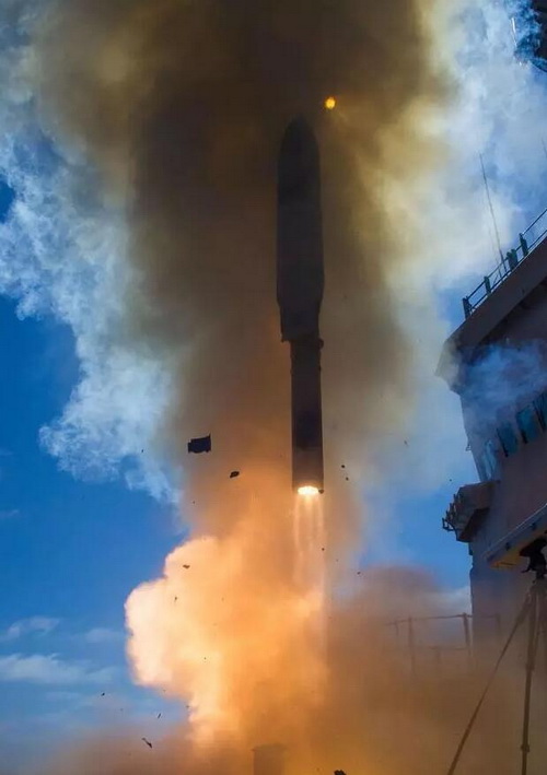 据洛克希德马丁公司报道,美国在7月18日首次从海上发射LRASM反舰导弹,这表明美国已经开始建立针对敌国航母等大型舰艇的反舰攻击能力。这次发射使用的是修改的战斧导弹系统来传输指令,而图上可见导弹的助推器,则是借用阿斯洛克反潜导弹的助推器。