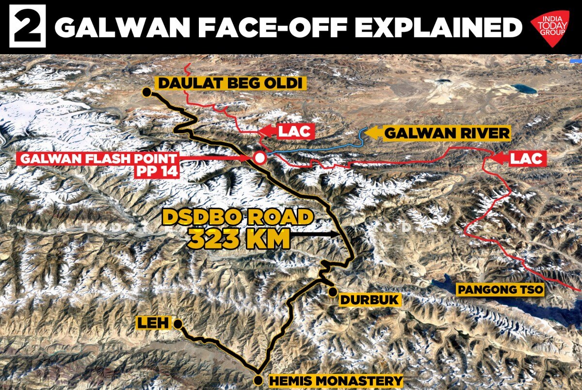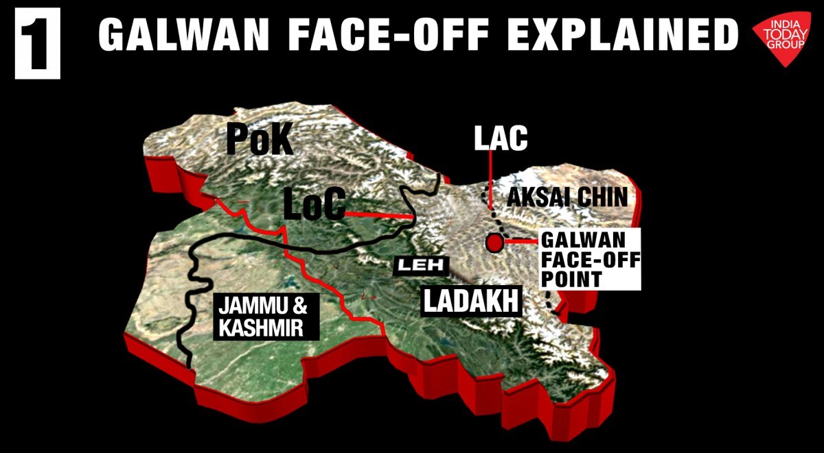 After four days of painstaking effort, cutting across multiple editorial teams and specialities, the India Today Open Source Intelligence Team (OSINT) has been able to put together the most comprehensive account of what's happening along Line of Actual Control (LAC). Most people seem highly confused about what’s really going on in the India-China border face-off. So we invested substantial time, energy and effort to bring alive the reality of the situation on the ground for our viewers and readers. The current stand-off between India and China in Eastern Ladakh is the biggest military build-up since 1962 so it’s important to take a deep dive to make sense of the story. Exposing China’s cartographic aggression. Watch #Newstrack with @rahulkanwal | #ITLivestream pscp.tv/w/cbOI0jMyMDQ4… The latest maps created by India Today take a deep look at the Galwan Valley, one of the most controversial sites where Indian and Chinese soldiers have faced off. The maps show the Galwan river, the peaks surrounding it and the valley in between.
