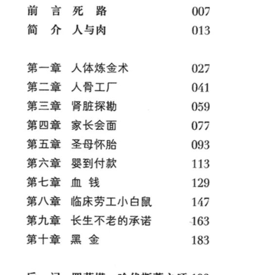▲《人体交易》目录