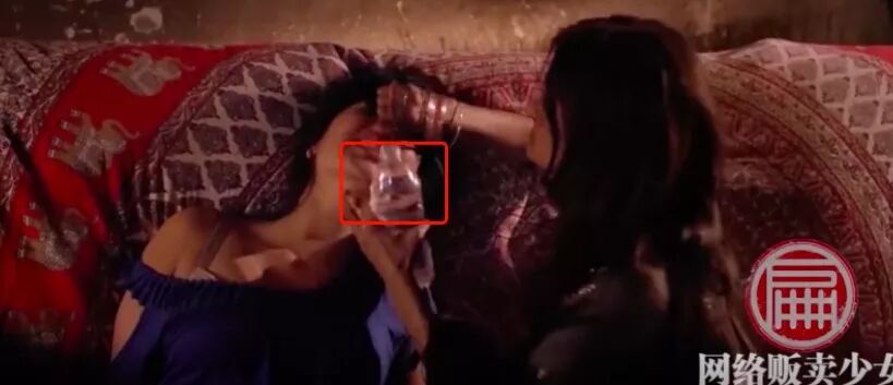 ▲影片截图,妓院女老板给女孩灌药