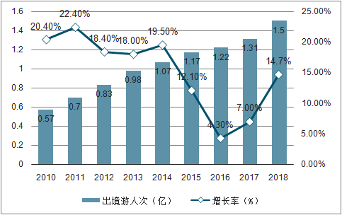 还是以疫情前的数据为准(疫情后不具备参考性),2018年全国出境游人次高达1.5亿,并且,每一年都有巨大增长。