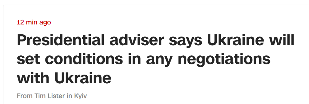 [环球网快讯]美国有线电视新闻网(CNN)刚刚消息称,乌克兰总统顾问表示,乌克兰仍将在任何谈判中设定条件。