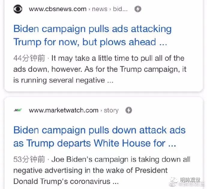 拜登和佩罗西等民Z党大佬的反应令这界瓜友大吃了一惊,没想到啊没想到,老对头和对手病了,竟然无人幸灾乐祸,相反倒爱心满满,送上诚挚的祝福与祈祷。相比这界众多瓜友的花式幸乐,这境界简直令人无地自容。我抿嘴笑了,拜登、佩罗西们的反应不出我的意料,而文明世界的日常就是大家可以为了公共事务斗成乌眼鸡,但nothing is personal,一切都不过是基于不同理念但出发点与愿望皆良好的合法公开交锋,与私人恩怨无关。所以,为了country,为了people,在对方遭遇不幸时搁置分歧、共度难关,是文明世界每一个正直正派的政客都会做的事。于公,这是无愧道义,于私,这是无愧自己,加在一起,就叫做无愧上帝。或许您要说,口头上意思几句谁不会呀,一切不过是逢场作戏而已。这您可就以那啥之心度君子之腹了。拜登,不仅公开向老川夫妇送去了祝福和祈祷,还做出了令这界瓜友百思不得其姐的举动:为了让老川夫妇有良好的心情养病,为了让第一家庭成员专心致志陪伴老川夫妇度过难关,拜登团队宣布,在老川夫妇康复和重返竞选活动前,将停止一切针对老川的广告攻击。