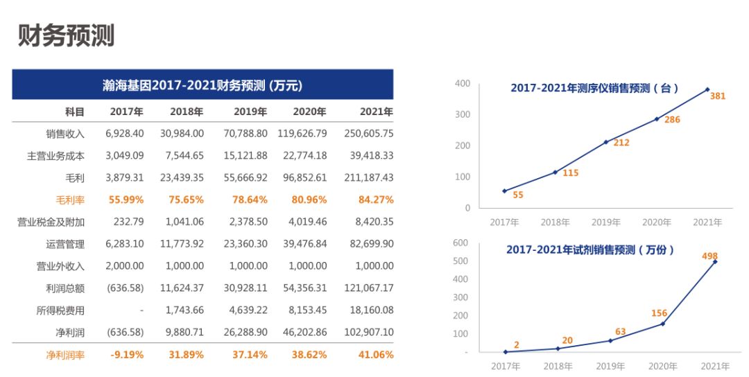 划重点(初步浏览后的印象,只供自己参考) 1) 贺及团队的基因产业商业计划书中的技术与产品介绍: 是临床基因检测测序仪! 这个应该也是贺团队的基因技术的核心,整个技术的核心说的都是分析,测序,诊断, 并没有提他们在基因改造拥有特别的核心技术,产品,设备与入准的技术! 2) 这个项目2017年基本技术才开发完成,目前应该还处在继续的开发和研发阶段! 3) 这份计划书写的很清楚,他们目前不拥有成熟的技术和产品,他们的主攻产品都仍然还在 研发,开发阶段,并且需要经过临床实验,入准,临床,审批,注册要到2019年 生产许可预计在2020年,做过医药,医疗项目投资的都很清楚,2020年拿到声称许可的时间表这个只是预估,因为需要临床实验,以及一切不可控,与未知因素,能完成的时间很难预料! 总而言之,他们基因测序的核心技术和产品远没有到被验证和认可的程度! 4)如果他们是基因测序方面的专家,会测序就可以随便的改造基因吗? 5) 财务预期的数字是重点! A) 计划中的核心技术和产品都还在研发阶段,产品根本没有问世, 2017年有这么高的的财务营收,这些营收是什么收入,是提供什么样的服务的收 入?? B) 按照他们这样的start-up公司,而且在出创的企业,公司2017年的管理费用达到6 亿多人民币?这个其中大部分应该是工资,有点太夸张了吧? 5) 华大基因的联合创始人在列,华大基因本事就是有很多故事的基因公司! ---------------------------------------------- 贺建奎博士基因产业的商业计划书曝光