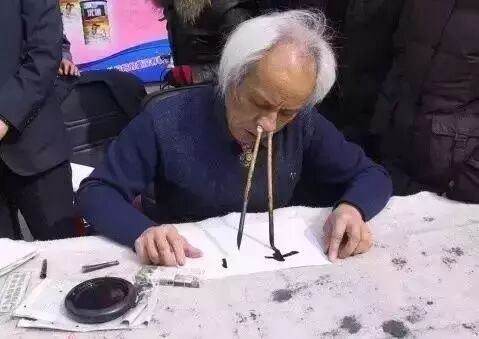 除了上面这些靠头铁吃饭的,杂耍特技也跨界融入到了社会书法老师的笔锋之中。