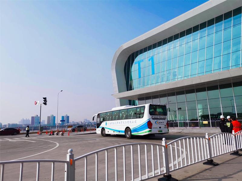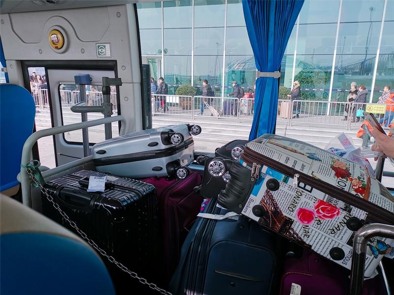 新建的T2候船楼还没启用 回港下船需要乘坐免费大巴去地铁站的,出了主楼一直往T1处走,在那里排队上大巴。变化较大的是,免费大巴的车况有了很大改善,车辆前后都有放行李的位置,人坐满就发车,很有秩序,等候时间不长,棒棒哒!