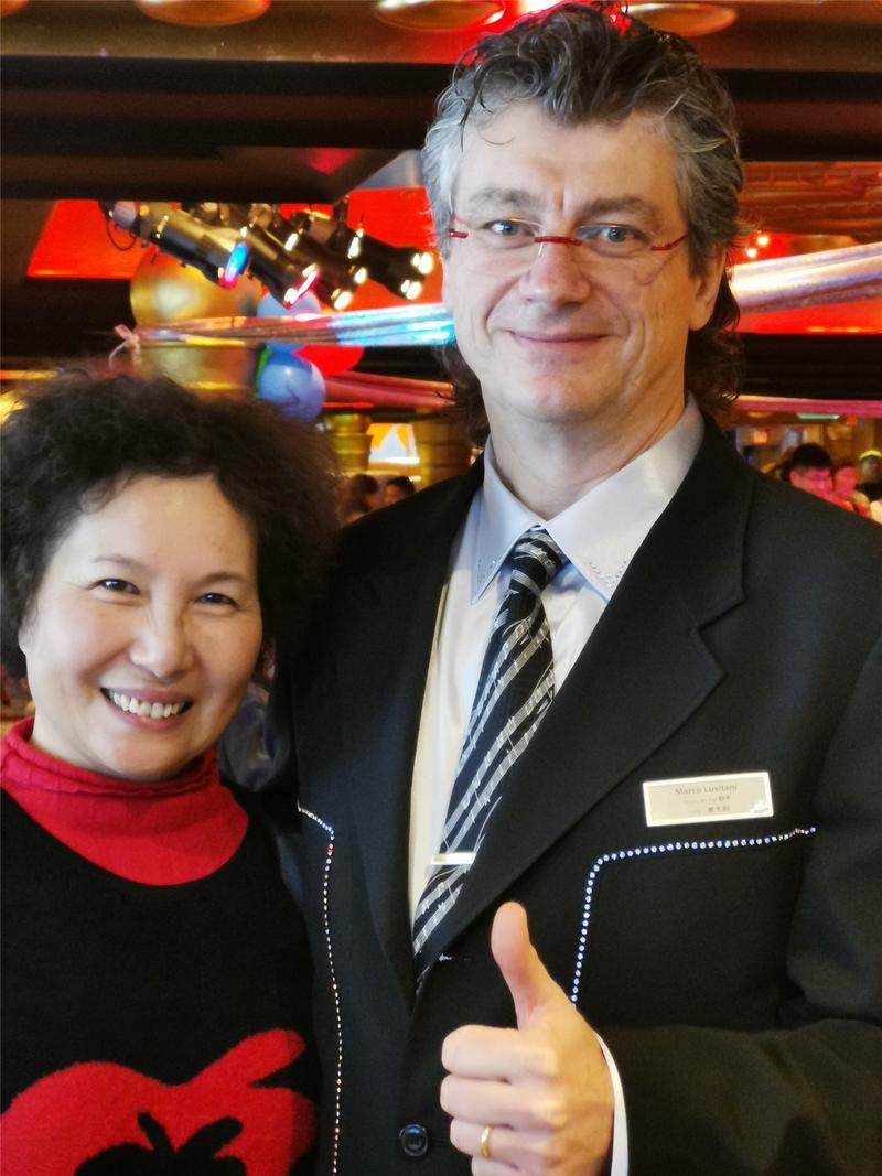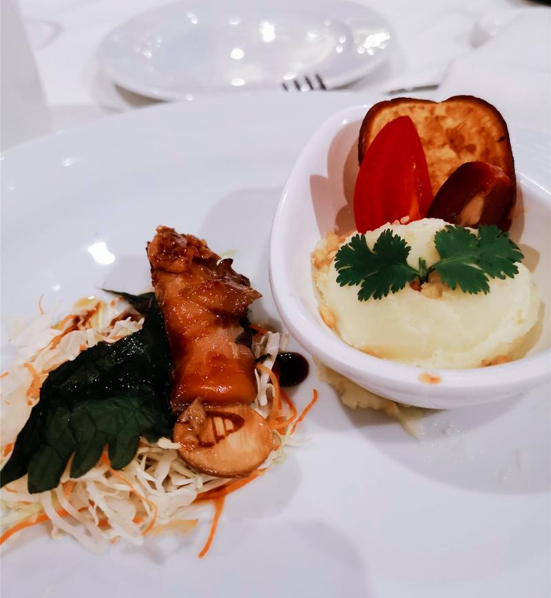 7、非自助餐厅的用餐模式基本没变,菜单改为中英文版,餐品一般,感觉船员们都习惯于中国式乘邮轮的风格了,也都不冷不热机械地接待乘客。总体上西餐一般,中餐好吃,点心不错,冰激凌也不错。