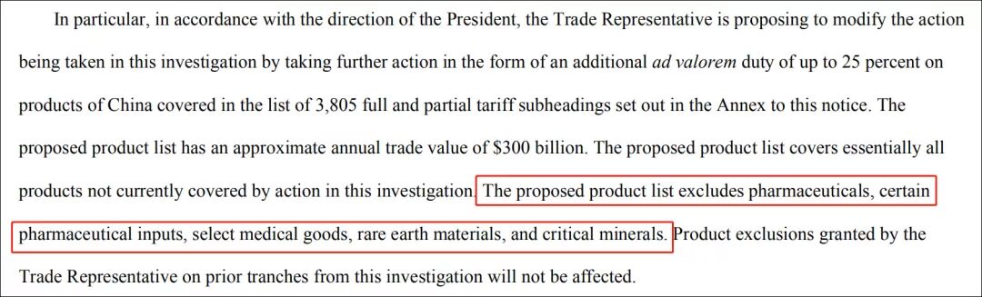 稀土。 当地时间周一(13日)晚,美国贸易代表办公室发布公告,公开了对约3000亿美元中国输美商品加征关税的清单。 就在上周五(10日),美国贸易代表莱特希泽声明称,周一公布的清单将面向所有目前还未被加征关税的中国产品。 然而,清单显示,莱特希泽口中的“所有”却不包含稀土、关键矿物等资源,同时排除了来自中国的药品和特定医疗产品。 众所周知,中国是世界上最大的稀土生产国。此前,观察者网专栏作者金灿荣也指出,中国打赢贸易战的三张王牌之一,便是控制稀土的对美出口。 对于这一细节,14日晚,路透社援引咨询企业Adamas Intelligence方面的观点称:“(稀土等)对美国工业和国防至关重要,短期内没有其他供应可以替代。若加征关税,将使美国承受比中国更大的痛苦。” 稀土、关键矿物等不在其 当晚公布的清单长达142页,涵盖了3805种产品,包括农畜产品、衣物、家居商品、手机、笔记本电脑等在内的消费品,最高将征收25%的关税。 不过,USTR在公告中明确,拟征税产品不包括药物、特定医疗产品、稀土材料和关键矿物(critical minerals)。 至于如何实施,USTR公布了时间表: