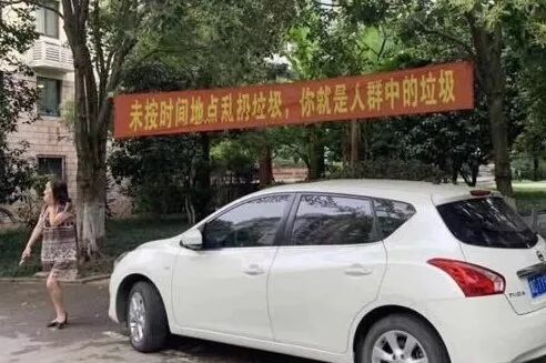 更加直白的,直接在小区里拉起横幅:乱扔垃圾,你就是垃圾!