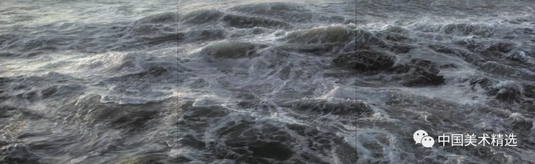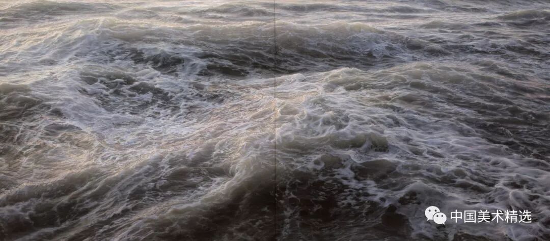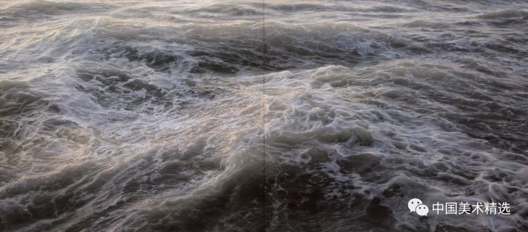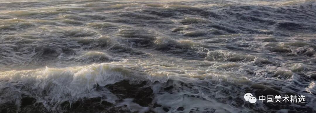 Ortner’s process focuses on his unique relationship with the ocean which is reflected in large-scale paintings of bodies of water. His new work examines the tender and terrifying interplay that occurs as waves crash against one another.
