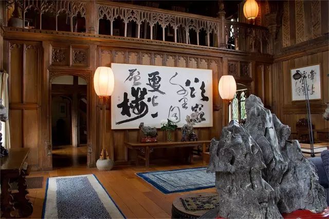 室内的平头案和造型各异的雅石,是水松石山房主人穿梭于古今的见证。屋内既有西方的壁炉和布艺沙发,也有东方古典的屏风和灯台,这种西东方布景的强烈冲击,正是Hugh Moss所追求的:遗世而独立的座落在世界的尽头。