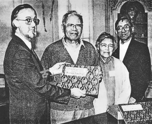 1990年,Hugh Moss(左一)与王世襄(左二)在《明式家具珍赏》英文版发布会现场。