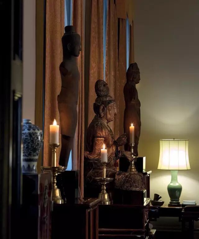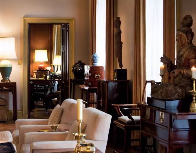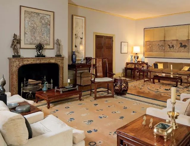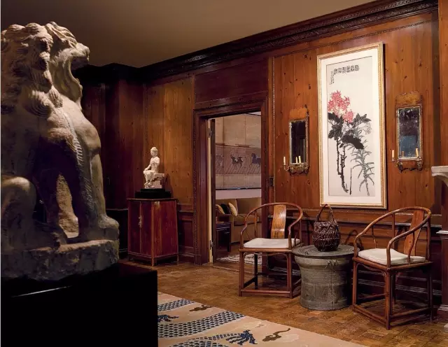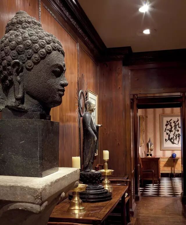 所以在位于纽约第五大道的宅邸中,他用自己超绝的文化品味与审美,打造出了一座跨越东西文化、冠绝古今的华美大宅。地上铺着清代宫廷地毯,条几上摆放唐代石刻菩萨,门边立着唐代陶俑......