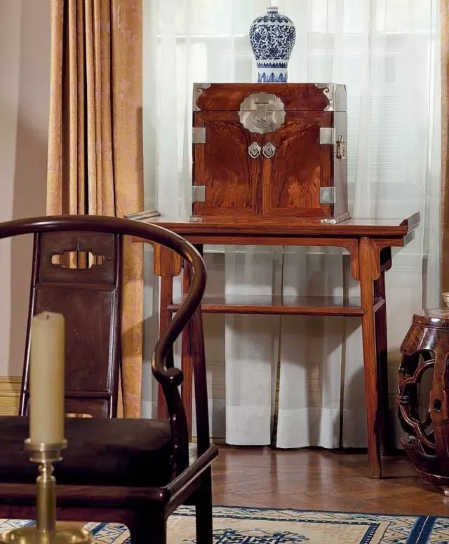 阳光洒进书房,在造型素简的平头案和四出头官帽椅上落下点点余辉;古堡书案上,静静地立着明代的罗汉……