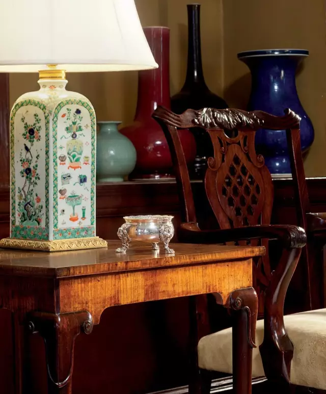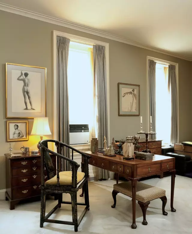 安思远善于组合不同文化、年代、风格的家具,以书房为例,他知道访客会从前厅进入书房,和坐在书桌前、背对窗户的他会面,就特别安排让访客首先窥见一对扶手椅的背面。因而,他特别注意椅背的修饰和椅脚的独特美态。
