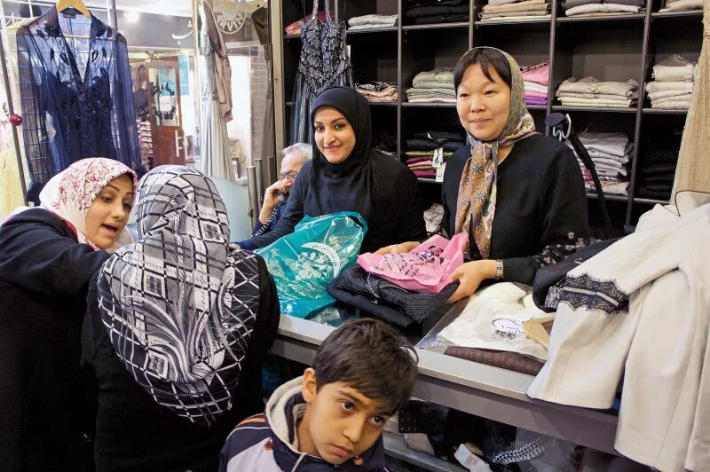 黄薇(右)位于德黑兰帕斯达兰大街的服装店