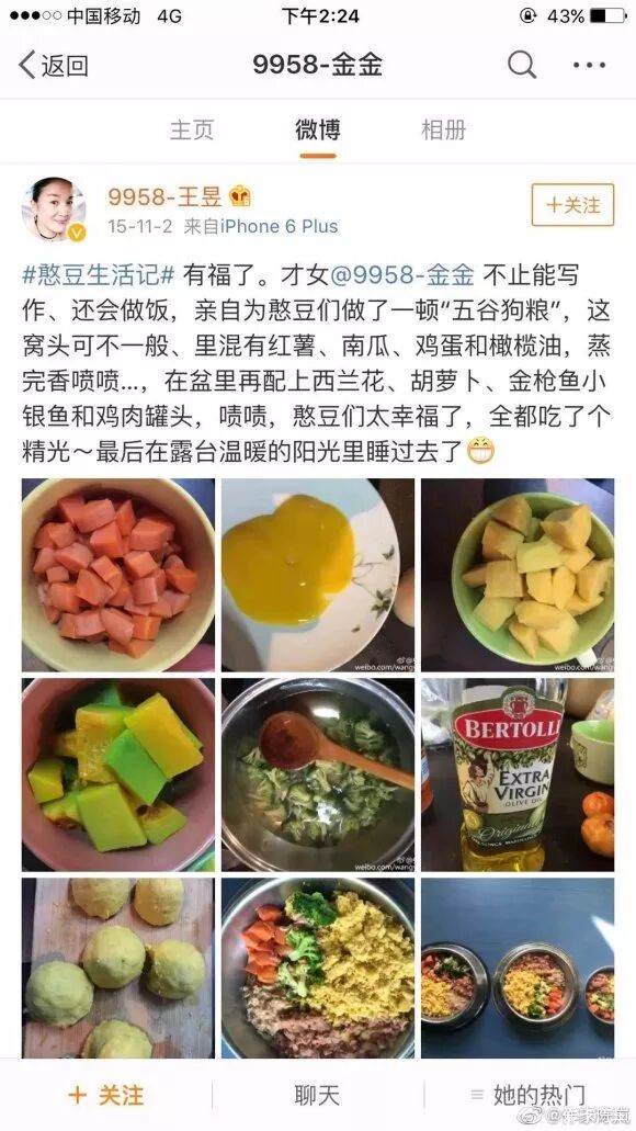 公众大概不知道她们在办公室养狗,员工专人负责用金枪鱼、银鱼、橄榄油给狗做营养餐,看图。这狗,肯定吃得比我们和吴花燕好多了。
