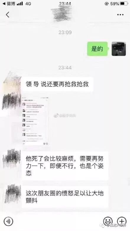 表演式搶救--李文亮醫生死後的12個小時小糍粑大世界 2020年2月6日晚上9:30分,或者說是2020年2月7日凌晨02:58分,吹哨人李文亮醫生去世。 我們來看看從2月6日21:30分到從2月7日9:30分,整整12個小時,都發生了什麼。 大家知道李文亮醫生去世的消息,來自張純醫生的一條微博。 我們不知道張純醫生為什麼會刪除這條微博,但是此時此刻,不禁讓大眾以最惡意的想法去揣測。 看到這條微博以後,網友心痛至極,紛紛悼念李文亮醫生並且要求武漢中心醫院給大眾一個說法,更有網友馬上翻牆找到了人民日報海外版的推文,而推文中公布的的時間,正是2月6日的晚上9點30分! 正當大家還沒有反應過來的時候,武漢中心醫院開始了一系列的騷操作。 2月7日凌晨00:38分,武漢中心醫院發微博稱李文亮醫生還在搶救中。 那麼問題來了,從晚上9點30分到凌晨00:38分,這三個小時裡面,李文亮醫生經歷了什麼。 最重點的一個截圖在這裡。