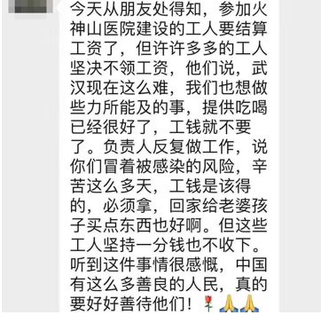 | 恕我直言,讨要欠薪的火神山工人,比“不要工钱”的更伟大 |