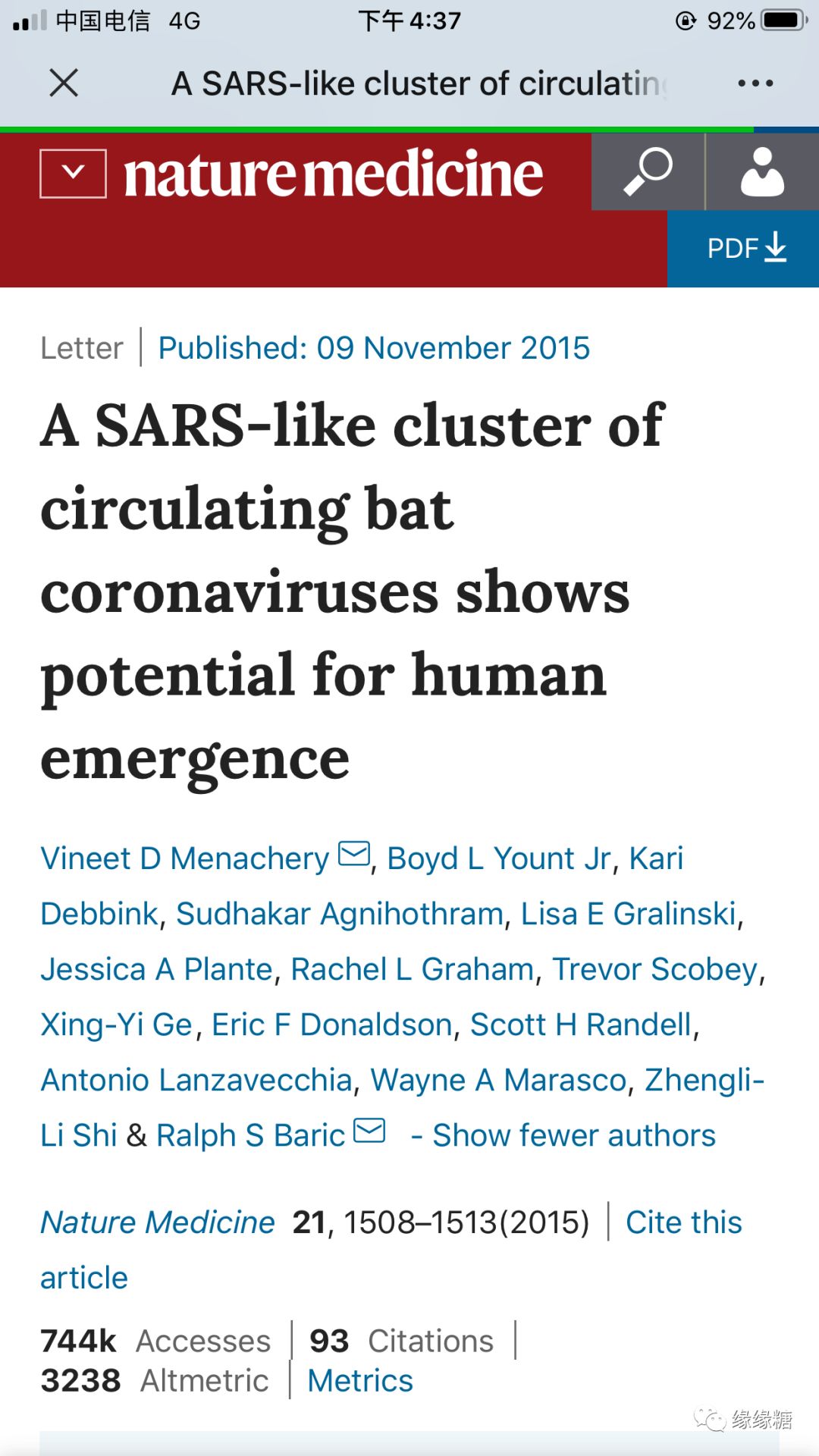 前两天,石正丽在腾讯课堂开了直播,名头为“2020SCIENCE科学抗疫”系列科普公益直播。既然她开了直播,我总需要先知道一个事情:石正丽是谁? 一个多月以前,我还不知道石正丽是谁。但是她的一句话一下子把她给推上了热搜,“闭上你们的臭嘴”!这句话,惹怒了很多人,说她并没有学者的风范。就我而言,我觉得这句话不好听、不好看,但是漫漫人生路,谁还没有骂过人,没有说过几句狠话呢?如果真的是冤枉到她,还不许人家反击吗?因言获罪,从来不是一件好事。所以我决定忽略她的这句话,“听其言”,更加要“观其行”。于是,我的重点是要知道:石正丽是做什么的,到底做过了什么,应该做什么,没有做什么? 一、石正丽是做什么的? 在百度百科上清楚的写道: “现任中国科学院武汉病毒研究所研究员。 美国微生物科学院院士。 武汉病毒所新发传染病研究中心主任、武汉国家生物安全实验室(四级)副主任、生物安全三级实验室主任、生物安全工作委员会主任、新发病毒学科组组长。” 了解了,她是研究病毒的。那么具体研究何种病毒呢? 百度百科上也有写道: “2019年1月8日,中国蝙蝠携带重要病毒研究,国家自然科学二等奖,获奖者:石正丽、葛行义、张树义、李艳、杨兴娄(单位均为中国科学院武汉病毒研究所)” 那么,这些名头和奖项之下,她具体是做什么的呢?我带着问题追索,居然有了如下的发现。 二、石正丽到底做过了什么?和美国北卡罗来纳大学教堂山分校什么关系? 在2015年11月9日的Nature学术期刊上,刊登了一篇文章。题目是“ASARS-like cluster of circulating bat coronaviruses shows potential for humanemergence”【中文翻译大致意思是:一群类SARS性质的circulating蝙蝠冠状病毒展现了在人群中出现的潜在可能性。(很抱歉,因为不是学医学的,这个翻译只能凑合着理解了。而且circulating这个词有传播的意思,有循环的意思,但是我不知道它在这个场合应该是什么意思,就直接把它放在句式里面了。)】。其作者名字,按照先后顺序排列,分别是:VineetD Menachery, Boyd L Yount Jr, Kari Debbink, Sudhakar Agnihothram, Lisa EGralinski, Jessica A Plante, Rachel L Graham, Trevor Scobey, Xing-Yi Ge, Eric FDonaldson, Scott H Randell, Antonio Lanzavecchia, Wayne A Marasco, Zhengli-LiShi & Ralph S Baric。 因为一共有15个作者,我需要搞清楚他们的排序具有什么含义。因此,我咨询了医药业方面的从业者。据他们告诉我:这样的学术文章的第一个作者是主要工作者,其他人按照贡献和作用以此类推,从贡献大到贡献小来排列。但是,最后一个作者除外。一般而言,最后一个作者是老板,也是这个项目组上最“牛”的人。 那么这样看来,这个文章的最主要的贡献者就是名字后面加了一个小信封标志的两个人:VineetD Menachery,和RalphS Baric。 而石正丽呢?一个酷似石正丽的名字的英文Zhengli-LiShi(多了一个Li),是15个作者中第14个名字,这个人,确定是石正丽吗?Nature上面给出了她的工作单位(Key Laboratory of Special Pathogens andBiosafety, Wuhan Institute of Virology, Chinese Academy of Sciences, Wuhan,China。这个单位就是武汉病毒所。如果武汉病毒所同时间并没有一个叫做石正丽丽的人出现,那么这个人可以被认为是石正丽了。)按照这些作者的排名,她被排在了第14位,因此其贡献是否是可有可无、可以忽略不计呢?还是说,她具体在这个项目上做了什么工作呢? 同时,这里面第9个名字是Xing-Yi Ge,他是不是百度百科里面所记载的“2019年1月8日,中国蝙蝠携带重要病毒研究,国家自然科学二等奖,获奖者:石正丽、葛行义、张树义、李艳、杨兴娄(单位均为中国科学院武汉病毒研究所)”里面的葛行义?如果是,这个人的名字都在石正丽之前,这意味着什么呢? 在文章的末尾,我找到了他们这些人每个人的分工,如下所示: “Contributions V.D.M. designed, coordinated and performed experiments,completed analysis and wrote the manuscript. B.L.Y. designed theinfectious clone and recovered chimeric viruses; S.A. completed neutralizationassays; L.E.G. helped perform mouse experiments; T.S. and J.A.P. completedmouse experiments and plaque assays; X.-Y.G. performedpseudotyping experiments; K.D. generated structural figures andpredictions; E.F.D. generated phylogenetic analysis; R.L.G. completed RNAanalysis; S.H.R. provided primary HAE cultures; A.L. and W.A.M. providedcritical monoclonal antibody reagents; and Z.-L.S.provided SHC014 spike sequences and plasmids. R.S.B.designed experiments and wrote manuscript.”【此处可见:VDM设计、协调并且执行了实验,完成了分析,写好了文稿。他是主要工作的人。而石正丽提供了SHCO14和质粒,最后面的大老板负责设计实验和写论文的文稿。】 为了搞清楚这篇文章到底讲了什么,做了什么,我将其开头段落的部分内容摘抄如下:(每一句摘抄后面直接附上翻译,因为我学的不是医学翻译,大家凑合看吧) Theemergence of SARS-CoV heralded a new era in the cross-species transmission ofsevere respiratory illness with globalization leading to rapid spread aroundthe world and massive economic impact.(SARS冠状病毒的出现已经开启了一个严重呼吸疾病跨物种传播的全球一体化新纪元,导致全球化迅速传播和巨大的经济影响) Sincethen, several strains—including influenza A strains H5N1, H1N1 and H7N9 andMERS-CoV—have emerged from animal populations, causing considerable disease,mortality and economic hardship for the afflicted regions. (自此,一些疾病,包括甲流H5N1, H1N1 ,H7N9,MERS-CoV,已经从动物种群中出现,导致受影响地区的疾病、