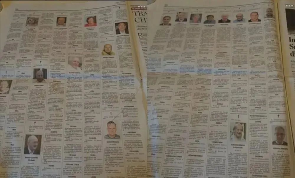 运送尸体的卡车一眼望不到边 铺天盖地的讣告登满了报纸