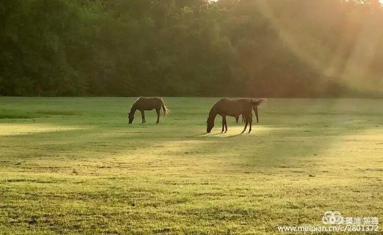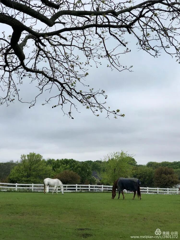 我就住在離他們不遠的地方,所以喜歡去他們家的那條小路上散步。春夏秋冬,常常看見約䎐在馬槽前喂馬,蘇姍陪伴在側。或者看他們在干一些農活,種菜、種花什麼的。他們總是一前一后,形影不離。有時候他們坐在屋前的Porch上喝茶。 每次遇見,我們都會打招呼,簡單地問候幾句。他們也不會介意我停下来,站在他們的牧場邊,用手机拍他们的马在夕阳裡的英姿。慢慢地,我們熟悉起來,蘇姍說,如果沒有看見我,她就會惦記我,猜想我一定是出差了。 約䎐和蘇姗都已經退休了。他們過著安靜舒適的牧場生活。我每次經過他們的家,都會情不自禁地憧景有一天也能夠像他們一樣:和自己相愛的人過這樣平凡的生活。 有一天,我又去散步,只見蘇姍一個人在路口張望,看見我,她神情緊張地告訴我,他們的一只馬病了,約䎐從早晨就帶馬去看獸醫,她有些焦急和不安,晚餐早已做好,可是約䎐還沒回來!我不再繼續往前走,停下陪她聊天,借此安慰她。 她焦慮的話題是圍繞約䎐的。在這次談話裡我才得知原來約䎐年輕時在軍隊服役,退役后去上了醫學院,在政府的醫院里做了一辈子手術醫生直到退休。蘇姗做護士,他們在同一個醫院工作。 我萬萬想不到,他們住著简朴的農庄,過著牧馬人的生活,之前竟是醫生。我一向對專業人士怀有敬意,因為我覺得他們是社會精英。 我知道蘇姍的心情有一些慌张, 就陪著她在路邊说话,直到太陽快要完全落山的時候,看見約䎐的卡車拐進了小路,蘇姗和我都放下心來。 約䎐下車就向我道謝,謝謝我陪著蘇姗,他說:蘇姍不習慣一個人在家,我們總是在一起的。 我的心裡又是一陣羨慕,從約䎐的話裡,我體會到他們相伴的意義。