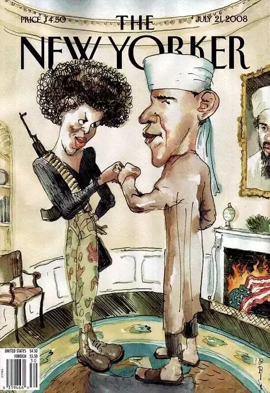 还没完,又有网友发现,特朗普的头部,恰好顶着“TIME”的字母“M”,头上像是长了一对“恶魔角”。 图片来源:英式没品笑话百科 《时代周刊》在暗示特朗普是恶魔? 被装上“恶魔角”的,不止特朗普一人。 ▼ 特朗普的竞选对手希拉里 2015年3月12日《时代周刊》封面 ▼ 希拉里的丈夫克林顿 1993年1月4日《时代》周刊封面 据统计,类似的封面,《时代周刊》已经用了30余次。除了“恶魔角”这个老梗,《时代周刊》恶搞的手段,花样百出,美国总统防不胜防。 ▼1992年,《时代周刊》为总统候选人克林顿,设计了一个灰色如同X光片的“阴暗”形象,以暗讽他不太可靠的负面公众形象。 1992年4月20日《时代周刊》封面 ▼ 2003年,小布什总统发动伊拉克战争,引发争议。《时代周刊》设计了这张封面,右脸被亲一口,左脸被打一拳,配上小布什萌哒哒的表情,笑果十足。 2003年12月1日《时代周刊》封面 ▼ 1980年,好莱坞“二流演员”罗纳德·里根击败现任总统卡特,成为美国历史上唯一一位演员出身的总统,也如愿成为《时代周刊》年度人物。 《时代周刊》1980年年度人物 封面上,里根一身牛仔,双手插在裤袋里,185cm的身高让里根颇有长腿欧巴的风采。 看上去没毛病。 然而,美国是一个极为重视着装礼仪的国家,男性政客一般是西装革履,总统更有自己的公关团队和形象设计专家,以求在公众面前展现最好的一面。 封面上的里根却一身牛仔,与新任总统的身份极为不符。《时代周刊》是否借此暗讽里根“二流演员”的“黑历史”呢? 年轻时的里根 要知道,里根穿西装,真的很帅啊! 身着西装的里根 通过模棱两可的封面图片,表达自己的立场,却又片叶不沾身,实为《时代周刊》传承百年、独步天下的绝技。 2008年5月5日《时代周刊》封面 回到《时代周刊》最新的封面,如果特朗普追究起来,《时代周刊》大可矢口否认,“特朗普通俄”、“克里姆林宫吞并白宫”,只是其他媒体的过度解读罢了。 机智如《时代周刊》! 只靠机智也不行,《时代周刊》的底气还在于:言论或新闻出版自由是美国宪法保障美国人民的基本权利之一。 1791年,美国宪法《第一条修正案》明确规定,国会不得制定限制“言论自由或出版自由”的法律。 在美国,新闻媒体被称为独立于立法、司法、行政之外的“第四种势力”,享有“新闻自由”的基本权利。 美国《纽约客》将奥巴马夫妇刻画成“恐怖分子” 如果说,法律将权力关进制度的“笼子”,那么,媒体就是“笼子”外的“看门狗”。位居权力之巅的美国总统,便是媒体监督的首要目标。 调侃、批评总统,早已成为了美国媒体和老百姓的“家常便饭”,或是“特殊使命”。 美国街头涂鸦 美国国家广播公司(NBC)“周六夜现场”节目模仿特朗普与希拉里 看过一个笑话:一名美国人在白宫前大骂小布什总统是个白痴,结果马上遭到逮捕,罪名是——泄露国家机密。 《时代周刊》黑自家元首,还真蛮拼的。 |