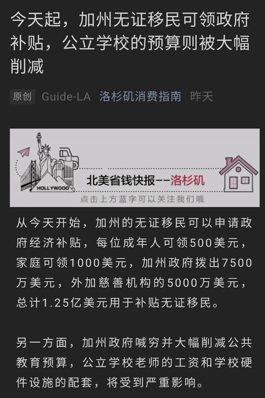 公共教育经费当然应该保证,但拿教育经费的困难为说辞去挤兑社会最底层的,拉美裔为主的无证移民,其种族主义的潜台词是非常明显的。想一想,难道无证移民就没有孩子?他们的孩子就不需要上学?他们的孩子就不需要生活费?如果真是关心孩子的话,就该想想无证移民的孩子又该如何?给无证移民一点帮助,难道不是也帮到了他们的孩子?