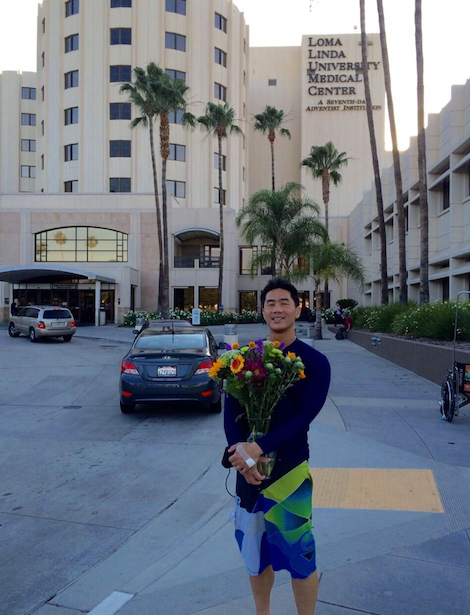 编者按: 曾经在飞机上救人的甄理达医生 (相关阅读:医生,飞机是否需要紧急降落?),还救过一个猝死的年轻人。时隔五年,这个年轻人怎样了呢?这一期,我们听甄医生讲讲这个真实故事的来龙去脉。 甄理达 M.D.,Ph.D. 白求恩医大77级学生,毕业后在北京医院工作。92年获美国Roswell Park Cancer Institute 分子与细胞生物博士。 约翰霍普金斯大学博士后。1997年在大巴尔的摩医院做临床内科规培。2001在华盛顿的乔治城大学完成三年消化科专培。2005年加入南加州Beaver医疗集团,工作至今。 五年前的今天,我偶然遇到的一件事情,改变了另外一个人的人生,也改变了我的人生。我的许多朋友还记得,总是催促我把后面的故事讲出来。今天,就讲讲这个故事和后续。 当时只有一个信念:一定要把他救活,而且要避免脑损伤的后遗症。无论病人是活还是死,发生骨折都是次要的,骨折是可以慢慢恢复的,而脑损伤是不可逆的。 只要他能活过来,并且没有脑组织的不可逆损伤就是最大的胜利。 10分钟后,鸣着警笛的救护车终于来了。我赶紧做了最后两次嘴对嘴呼吸,他的胸腔仿佛是有点反应,好像是在慢慢吐气。救援队的小伙子们接手抢救工作。他们第一件事就是给病人身体连上除颤器(AED)。 接上AED后,救援队员大声宣布:“病人有了自主心跳!” 我们几个参与救援的人都立刻跳起来欢呼,相互击掌庆祝。随后救护车载着病人向着我所工作的医院急驰而去,很快消失在视线里。 病人走后,人群聚集起来。警察记录下来参加援救的人的名字和联系方式。参与抢救的两个姑娘和我高兴地在一起照相留念。一个看起来像是东南亚裔的小伙子眼里噙着泪花,感动地说:“你们这样抢救一个陌生人,做得太好了”。 带着一种很复杂也很兴奋的心情,我驾着车子继续北上。中午到了拉斯维加斯附近一个休息站,吃午饭的时候,我把事情经过简单写写发在微信朋友圈里。然后,一路飞驰,在傍晚时分,到了营地跟朋友们会合。这时候才发现,所有的朋友竟然都已经知道这件事情了。有朋友还写了一篇快报发表在文学城网页上,这件事就这么传播开了。社交媒体的传播速度确实令人咂舌。 傍晚时分,一个叫芮娜的女子打电话给我,说她就是那个患者的妹妹。电话那头的芮娜一开口就激动地直哭,能听出来是刚刚经历过生活大起大落的那种哭泣。 我第一次知道,病人的名字叫斯蒂夫(Steve)。芮娜跟我叙述了后来的事情。 斯蒂夫是一个体育爱好者,常常晨起跑步。 出事那天早晨, 他起来后没吃没喝就一口气跑了15公里。他身上带着的运动心率监护器显示他的心率达到了177次/分,接着在9点56分心跳完全停止。 后来他自己回忆说,当时感到有点头晕,就找个草坪躺了下来。他躺的那个地方正好是片低洼地,路人根本看不见。 也是他命大,一个遛狗经过的老头正好看见这一幕,但不知道该怎么办,就立刻挥舞双手求助。 老头的举动引起了一个路过的护士注意。她看到斯蒂夫面色青紫,马上开始了心肺复苏。接着,我加入了抢救的队伍。 在我们的社区医院里,他的心跳已经恢复到正常,头部CT扫描也没有见到任何异常。由于病人仍然处在昏迷中,而且心电图呈现心肌受损的状态,他立刻被送到附近的医学中心进行低温治疗。医院的记录显示,当时病人一度出现去大脑强直反应,意味着病人有着严重的大脑损伤,可能会造成长期后遗症。在医院里他的身体被降到33摄氏度,插着数个管子,维持着他呼吸、心跳和其他生命指征。 随行警察取了他的指纹,从数据库里发现了他信息,这才知道他名字和身份。原来他是一名在加州州政府服务的牙医。在加州,所有注册医生都要在信息系统里留有一套完整的指模。根据这些信息,警察找到了他的家人,但是他父母正好外出旅游,还在回家的飞机上。妹妹也是个牙医,刚巧在外地开会。得到消息后,妹妹第二天急急忙忙赶回来照顾哥哥。 幸运的是,父母在当晚就到达了。 斯蒂夫的身体很好,经过48小时的低温治疗,气管插管拔掉了,慢慢地恢复了意识,开始的时候连妹妹都不认识,甚至将妹妹当成魔鬼,治疗也不合作,显得十分疲倦而忘性非常大。妹妹给他讲了许多次他过去的事情,他每次都很惊讶好像第一次才知道。估计这些都是是镇静药物的作用。 芮娜后来把哥哥的事情做成了一本画册,详细地记载了哥哥出事的前前后后。言辞间,可以看出兄妹感情至深。 接着我认识了芮娜和她的丈夫,还有斯蒂夫的父母。斯蒂夫的姓是Yee,他是第5代华裔移民,据查Yee应该是姓徐。他的祖先来自中国南方,1870年移民到美国夏威夷,在那里从事甘蔗田的苦力工作。斯蒂夫的母亲则来自于新加坡。斯蒂夫家是牙医世家,爸爸、妹妹及妹夫也都是牙医。 他的心脏科医生跟他说,这种心源性猝死在医院外被救活的几率小于5%! 在心脏科医生的坚持下,斯蒂夫安了心脏起搏器,终于可以出院了。出院那天,他抱着我们送给他的鲜花在医院门前留影。从那以后,我们跟徐氏家庭结下了特殊的友谊。 斯蒂夫当时是单身,但与一个越南裔的牙医美女热恋。她的名字叫克里斯蒂娜。据克里斯蒂娜讲他俩在2001年牙医学校已经就相识了,但只是一般的同学而已。 10年后,他们由克里斯蒂娜的妹妹介绍再次见面。一见面,斯蒂夫就开心地说他与一位美丽公主重逢了。之后,他们迅速堕入情网,彼此都是幸福满满的感觉。克里斯蒂娜觉得