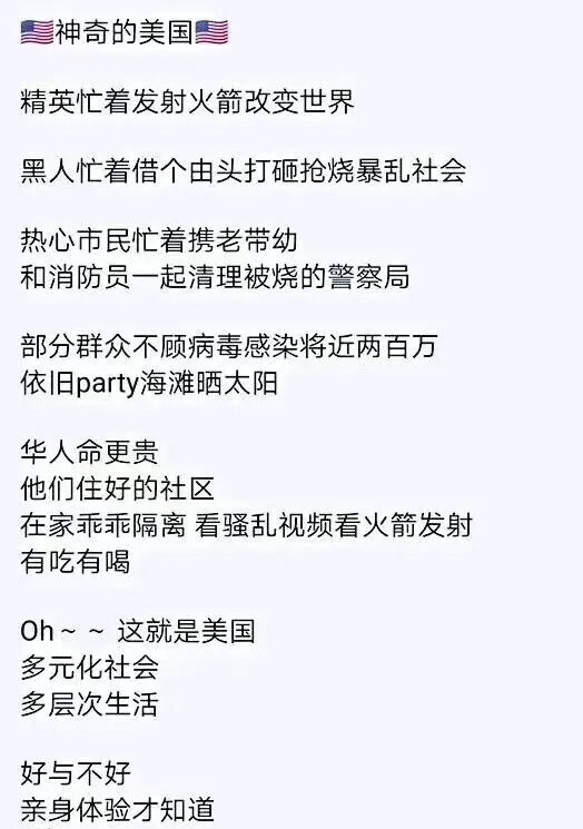 为什么我说黑人的抗暴运动没啥实质影响?明州之乱不是安史之乱,更不会成为美帝中衰的分水岭。因为种族歧视和滥用暴力,是美国社会的老问题,二百年来一直伴随共生,这本身就是一个多元化开放型移民大国必须付出的成本。你吸收全球移民,补充元气,多元化,有活力,是收益;你必须忍受多元族群之间的尖锐冲突,乃至矛盾激化的间歇性破坏,这是代价。