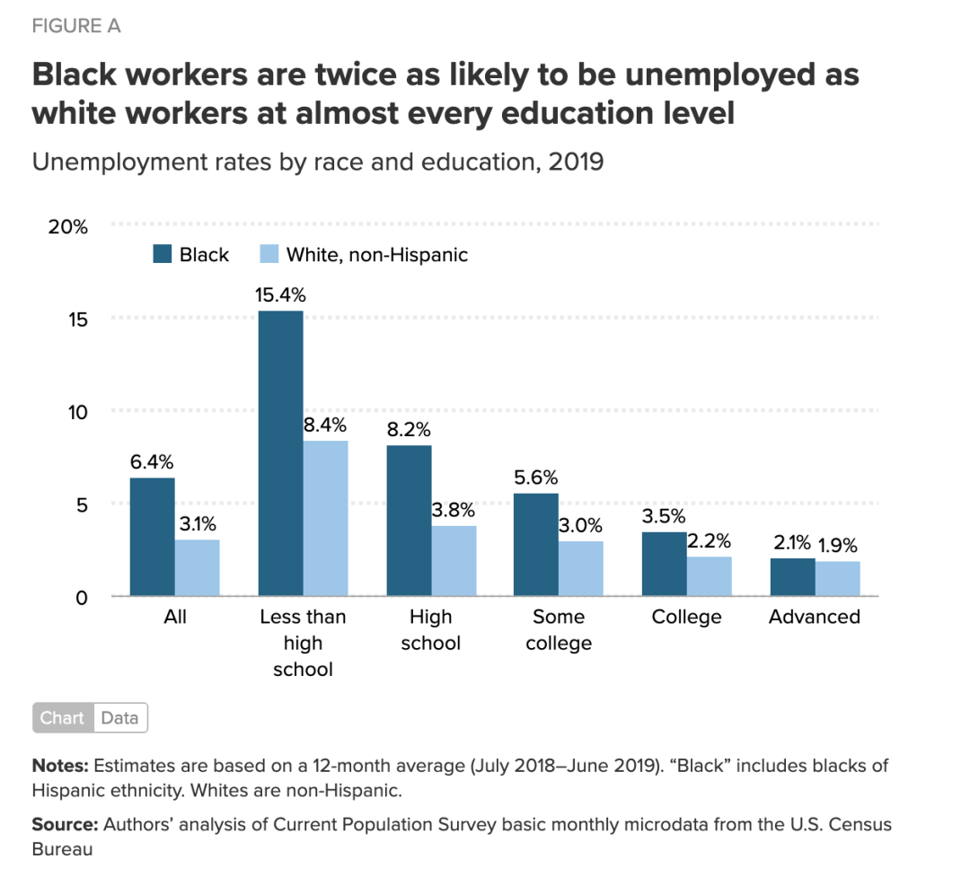 文 | 纽约华人资讯网主笔 詹涓 上周,乔治·弗洛伊德(George Floyd)在明尼阿波利斯去世,引发了席卷全美的大规模抗议活动,抗议的焦点是警察针对黑人社区的暴行和种族不公。 但非洲裔美国人也对在财富、收入和工资等方面存在的巨大差距而感到沮丧,即便是在美国经历了有记录以来最长的经济扩张之后,尽管股市在大流行前创下了纪录高位,这种差距依然存在。 在很多方面,2020年黑人和白人之间的财富差距仍然和1968年一样大。1968年,美国颁布了具有里程碑意义的民权法案,以回应多年来非洲裔美国人在社会和商业的几乎所有领域受到的不平等待遇。 在那之后的几十年里,白人财富激增,而黑人财富却停滞不前。现在,每七个白人家庭中就有一家净资产达到百万美元。对于黑人家庭来说,这个比例是1 / 50。 非洲裔美国人在财富和社会经济地位方面仍处在落后地位,这能简单地归结为他们不思进取,进不了好大学,从而找不到好工作吗? 《时代》杂志 2015的封面被编辑成了2020年的版本。当年的杂志封面标题为《什么改变了,什么没改变》,讲述因黑人弗雷迪·格雷(Freddie Gray)之死而引发的巴尔的摩暴动。在这次运动中,有人将封面上的2015再次划去,写上2020年。 勤学未必意味着高学历 举一村之力,小托马斯·爱德华·亨德利(Thomas Edward Hundley Jr.)花了6年时间,终于在2015年从位于华盛顿特区的霍华德大学(Howard University)毕业,获得了政治学学士学位。 亨德利出生时就没有左手,四岁时父亲因心脏病去世,母亲派特·亨德利是默瑟县惩教部门的卫生服务管理员,家中五个孩子里有三个陆陆续续上了大学。为了让亨德利完成学业,派特背了6.2万美元的联邦家长贷款,但是到了2012年春季学期结束时,她未获得该项目的批准。只差两个学期、还有27个学分就能毕业的亨德利只能暂时离开校园,回到老家新泽西州的樱桃山,在当地一家律所做法律助理。 2013年,他的母亲、姐妹、姨妈和表兄妹们举行了一次筹款活动,目标是筹集2.7万美元送他重返校园,这次活动得到了他们所在社区和教会的支持,终于,2014年春季亨德利回到了大学,并于2015年顺利毕业。 托马斯的母亲帕特·洪德利(Pat Hundley)为儿子的毕业而欢呼。 亨德利的哲学助理教授约隆达·威尔逊(Yolonda Wilson)说,“他是一个很棒的学生,我甚至不知道他经历了那么多的苦难。他从不找借口。” 一家人都期望这个机智、有韧劲的年轻人能继续攻读法学院,成为律师,这可能有望改写他本人甚至家族的命运。但就像是因为缺钱而差点读不完本科一样,这个愿望看似只差临门一脚,但却又显得那么遥远。 大学毕业后,他和他的母亲都需要为他的教育贷款偿债,30岁的他每月要还500美元,69岁的母亲派特每个月还400多美元。派特已经退休,靠兼职工作来支付账单。“我恐怕是要带着这笔债务死了,除非我中了彩票,”她说。 现在的亨德利仍然做着与大学时同样的法律助理工作,年薪约为4.5万美元,他已经参加了一次法学院的LSAT考试,成绩相当不错,但法学院的费用让他却步。他说:“费用改变了我的选择。” 关于黑人社区有一个极其常见的迷思。那就是黑人家庭有一种低估教育价值的文化倾向,因此缺乏向上流动的教育保障。这种心态导致黑人教育水平低,无法获得大学学历就无法取得更高的收入和稳定的生活。 但2010年杜克大学一项论文引用《青少年健康国家纵向研究》结果发现,与拥有同等资源家庭的白人相比,黑人受教育的年份更长,获得的学位证书更多。还有证据表明,在家庭收入水平、父母教育程度和/或父母的职业地位相当的情况下,相比白人家庭,黑人家庭仍然会克服不利条件,直接通过经济支持来支持子女的教育。换言之,黑人家庭是重视教育,并且希望通过知识改变命运的。这一点从亨德利一家甚至整个社区对他的教育支持上可见一斑。 黑人虽然整体上学历仍然偏低,但在持续向上走,美国劳工统计局(U.S. Bureau of Labor Statistics)的数据显示,1992年,25岁以下黑人工人中有42%拥有至少部分大学学历,到了2018年,这个数字上升到了63%。 但问题是,其一,虽然越来越多非洲裔美国人接受了高等教育,但他们未必能进入与自己在高中时学术水平相当的大学。乔治城大学(Georgetown University)2013年一项题为《分离和不平等》的研究报告指出,高中平均成绩达到3.5分或更高的黑人和西裔学生中,有30%只进了社区大学,而同等成绩的白人学生中,这一比例为22%。这份报告说,黑人学生尤其有可能止步于证书或大专学历,尽管在高中时他们的平均成绩达到B+以。 其二是美国高校费用日益高涨,这导致无数像亨德利这样原本贫困的黑人家庭不仅不能因为教育而改变命运,甚至反而有可能深陷债务困境。据“责任借贷中心”(Center for Responsible Lending)统计,在2016年,约85%的黑人学生需要借贷来完成学科学位,相比之下白人为69%,亚裔为45%。 左倾智库Demos在2019年8月发布的一份分析报告显示,在进大学12年后,白人男性平均已偿还了44%的学生贷款余额。白人女性偿还了28%。但对于黑人借贷者来说情况完全不同——他们越欠越多了。黑人女性的贷款余额在离开学校12年后平均增长了13%,而黑人男性的贷款余额增长了11%。有些人在无奈之下只能选择逾期或寻求个人破产,而这又会进一步影响他们的就业前景和还款能力。 比利时漫画家O-sekoer创作的漫画,被用于假的《时代》