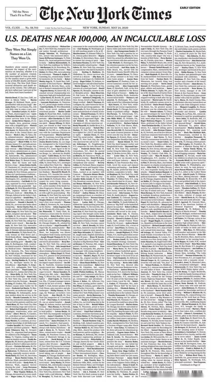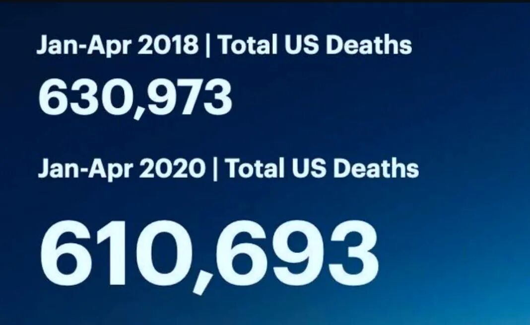 根据美国的自治和制衡规则,和治安权一样,防疫权也属于州权。也就是州长和市长要对本地的疫情负责。 美国的数据特别有意思,如果看《纽约时报》,他们排出了十万个名字 真的是传播学的高手啊。一般人的直觉反应是:死了这么多人,简直是一片混乱。但数据不分析,价值等于0。事情并没有这么简单,我们来看更多。 天哪,今年这么严重的疫情,1-4月美国死亡的总人数61万,而2018年同期的死亡人数是63万,竟然少死了近2万人。这是怎么回事,难道新冠病毒让美国人延年益寿了?