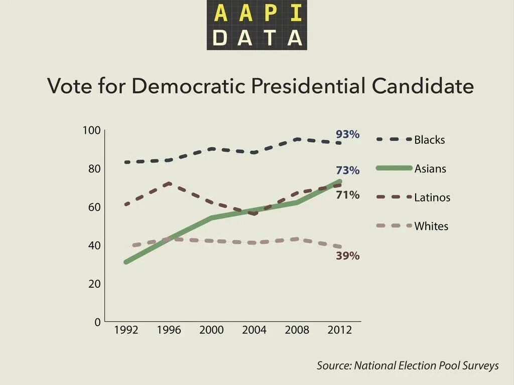 奥巴马时代,黑人对驴党的支持率达到了惊人的98%,就算到2012年依然保持90%以上的超高支持率。