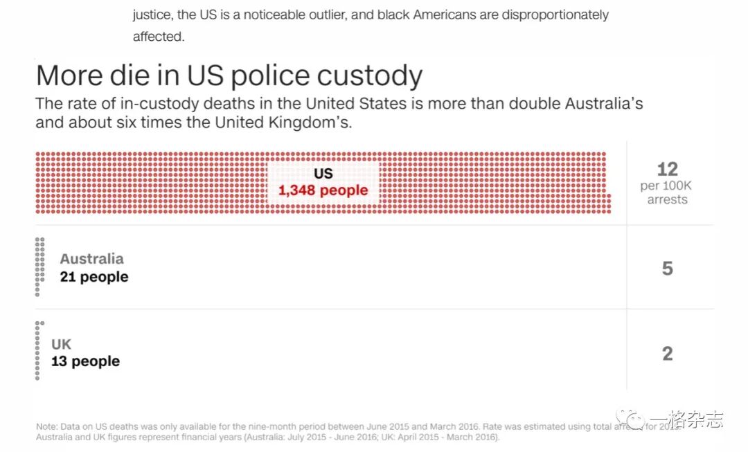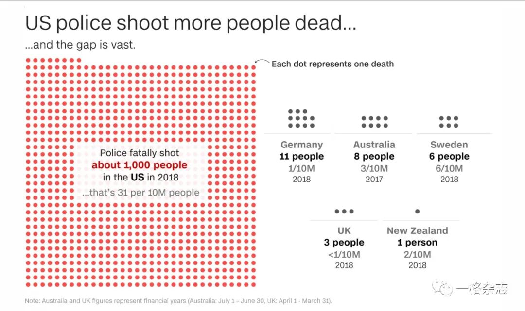 上面这两个数据,显示美国警察是对比国家中致死人最多的,其差距惊人。