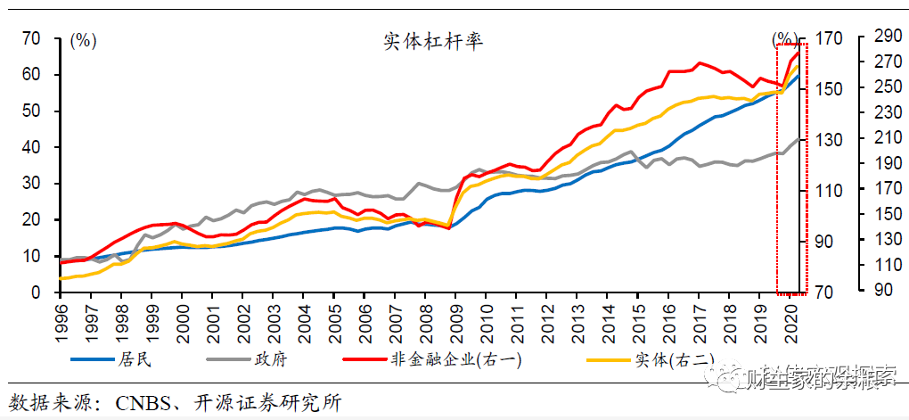 另一方面,说一千道一万,信用货币时代的钱,最开始都是通过“借债”借出来的,所以发钱的新时代,同时也必定是债务的新时代。 相比往年,过去半年中,正是因为“各路诸侯们”都拿到了更多的新钱,所以导致了中国经济的整体债务比率大幅度抬升,而拿钱最多的部门,也是债务杠杆增加最快的部门。