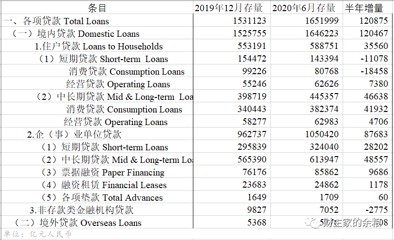 这就要用到央行另外公布的一份数据:金融机构人民币信贷收支表。 说明:因统计内容差异,此表格中的“贷款增量”与社会融资规模中的“新增人民币贷款”数额略有差别,但并不影响整体分析。