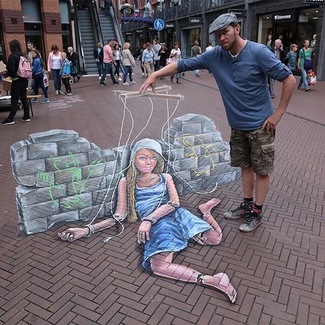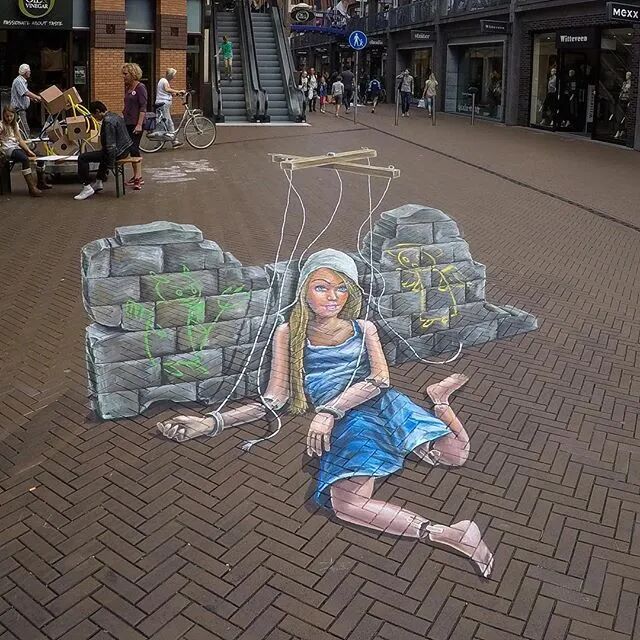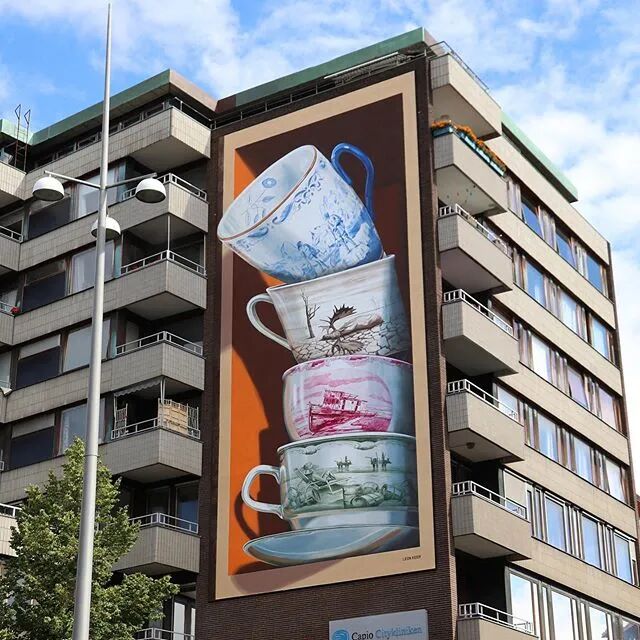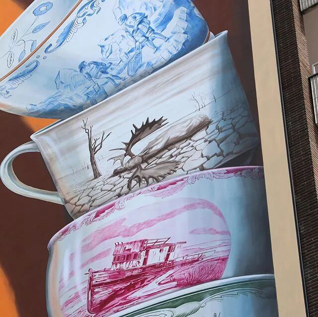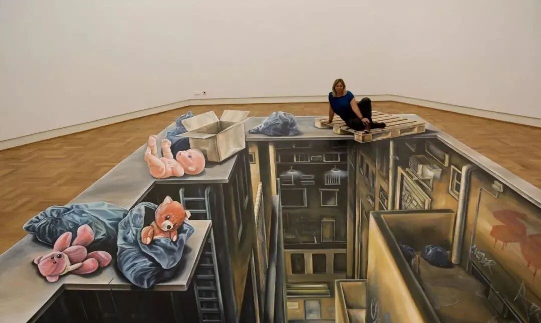 “生活就像茶杯一样脆弱” 仿佛下一个瞬间,就能摇摇欲坠摔个粉碎 在荷兰有这样一位街头艺术家Leon Keer 擅长用油漆、丙烯、粘合剂、溶剂、底漆、焦油等 将街道墙面用画笔变成令人难以置信的幻觉艺术 而在他最新的创作中,画了一系列的杯子叠加在一起 他命名为“ 破碎”,仿佛杯子随时会掉下来碎掉 这幅壁画画于瑞典赫尔辛堡 表达了艺术家对生活脆弱性的一种解读 “我想表明,您的生活可以在一瞬间被颠倒 您可能会失去工作、失去亲人、失去你的家 失去你认为重要的东西 这就是为什么我在茶杯上 画了各种世界末日场景的原因。” 每一个茶杯都画有一幅“摇摇欲坠”的世界末日场景 从冰川融化到海底漏油 从沙漠干涸到各式战争 这些让人揪心的内容探索了目前我们所面临的困境 最上面的杯子似乎随时会掉落下来 而当它翻倒后,所有杯子都将被打碎 就如我们的生活,似乎也是不堪一击 当一个困难产生后,仿若产生多米诺效应一般 多个问题接连产生,让人不得不深思 Leon Keer是著名的3D街头绘画艺术家 善于运用一些视觉错位的特点 创作出具有“欺骗性”的令人印象深刻的作品 他的作品不靠任何特效,完全用绘画来展现惊喜 从不同的角度来观看作品会产生完全不同的观感 从这一面看它可能是平面和弯曲的 当换个角度,则可能会看到非常完整完美的艺术品 这个过程被称之为“变体” 为了观看到最精美的三维图像 就需要观赏者找准欣赏此3D艺术品的最佳位置 就如那幅享誉世界的马耳他小熊糖绘画就是如此 站在几层楼的高空看,几个小熊糖是如此立体 而若只是平面欣赏,则感受不到画的精妙之处 Leon通过自己的技艺,将3D街头艺术带入新境界 鲜艳的用色,到位的细节处理,以及逼真的效果 让他的作品常常给人一种身临其境的感觉 虽然街头绘画存在时间很短暂,尤其是粉笔画 但是通过社交媒体的传播,能够让更多人更长久看到 在INS上,Leon喜欢与公众一起分享交流他的大作 他说:“每一副街头艺术品都独一无二, 并属于那条街和它的居民, 这种艺术形式的暂时性强化了它的生命价值”。 在成为一名街头艺术家之前 Leon是一名设计师,为可口可乐等大型跨国公司 设计和制作广告 并在欧洲、美国、澳大利亚、亚洲多个国家等地工作 受到工作的影响,让他对各种材料非常了解 作为广告设计师,为了满足客户需求 他也会尝试在不同的材质上绘画和设计 从而让Leon对于材料和技术试验产生了浓厚的兴趣 在开始进行3D街头绘画后 让他更是将以前的经验发挥得淋漓尽致 所以我们会觉得他的作品更真实更有质感更加立体 用艺术作品和世界进行对话 是Leon最喜欢也最习惯做的事情 在他的作品中,似乎总是透漏着某种信息 或者审视着某个问题,环境、生存、美丑等各式问题 通过这些不同主题的街头绘画 Leon将自己的思想毫无保留地展现 就如下面这幅被“勒紧”的心 仿佛就是艺术家在表达什么 心越是被各种东西禁锢住 越是有可能会随时“破损”甚至扭曲 只有解开绳子放它自由 你才能获得一颗完整而饱满的“心” 在Leon Keer的画作中 我们会看到很多反映这个时代病态的一些内容 通过将它们直观地画出来,进行不断地对比 让人从丑陋中升起对美的渴望和追求 用衰败的艺术 来反衬艺术家终其一生所追求的未受污染的美丽 通过建立关键的记忆点 让我们能够更加注意街上那些美丽的艺术品 同时也通过这些画作来引起我们的反思 去认真地思索那些我们曾经忽略过的东西 在Leon看来,每一幅作品都是一个独立的空间 每个作品的背后,都展现了一个小的世界 而观众就是一个旁观者 他们可以跳出原有的生活 走进这个艺术家所创作的世界 看到一些他们平常所看不到的东西 用艺术作品形成一个独立的小世界 同时,又建立起一座桥梁 让走过的人能够通过它走进另一个“不同”的世界 Leon通过不断地改进自己的绘画技术 运用各式颜料和光影的特点 打造出令人惊讶的立体效果 让他的画具有极大的“视觉欺骗”感和刺激感 对Leon来说,在人多的公共场合创作街头画 是一件非常有挑战和令人兴奋的事情 这种在大街上工作的紧张感让他着迷 路过的行人会不断地评价他的画作 Leon本人则必须要尽最大的努力 让自己能够全身心地关注到画本身 能够不受他人打扰地将草稿画变成现实 这件事本身就让他觉得刺激又享受 作为一名街头艺术家和设计师 Leon本身的工作性质让他能够全世界飞 每当他来到一个新的城市 就会用自己的画笔留下一幅画作 这幅在荷兰阿纳姆博物馆展厅的木地板上的画 画中有老房子和各种娃娃 它们似乎被丢弃在顶楼上 而楼下会有怎样的故事 让人忍不住地产生诸多的联想 这些娃娃为什么会被扔掉? 那个阁楼里又会住着怎样的人家? …… 看到这幅巨大的悬浮在空中的电风扇时 你会想到什么? 是想到某个以制作电风扇为名的知名企业 还是想到风能给我们生活所带来的改变 亦或是你注意到了墙上那些红色的印记 画家是想要表达一种怎样的思想呢? 欢迎在评论区来说说你的看法~ 欲望、贪婪、嫉妒、骄傲、愤怒和懒惰 这六个娃娃似乎象征着我们的这六种情绪 在德累斯顿的魔术城街道艺术展上 这幅作品让所有路过的人都产生惊艳之感 小娃娃们面部单纯 却又有着极大的破坏力和引诱力 旁边的娃娃机和这几个小娃娃形成了某种