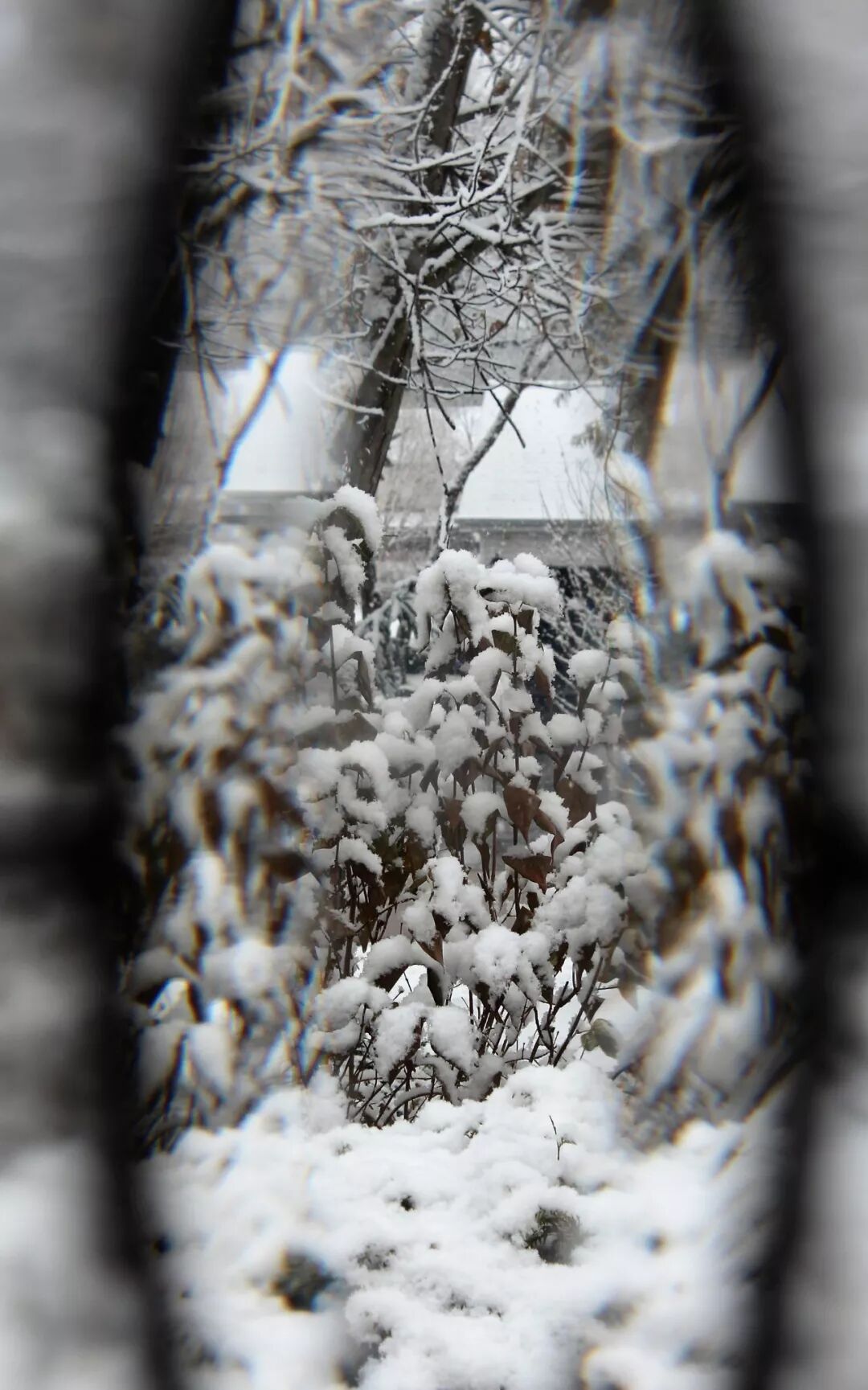 第二场雪也是从早上就下了,有风,雪花漫天地飘,但无论怎么飘,这一片与那一片之间都保持了一点距离。飘到窗前时,雪花的路线突然都弯了,一回身,它们就去寻找伙伴们了。而没来得及转身的则撞到了墙上、窗户上,碎了。