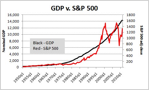 按Bureau of Economic Analysis (BEA), 真实 GDP 已经高于衰退前2007年峰值了,按2005年的美元算,美国上季GDP$13,352.8 billion, 比Q4 2007 的 $13,326.0 billion 高出0.2%. 名义 GDP 则达到 $15,198.6 billion in Q3 2011.下面是美国GDP和SP500图,SP500已经远远落后于GDP增长,你觉得美国股市还有多少下跌空间呢? ![]() |