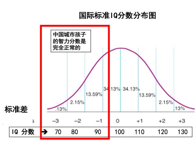 但是我觉得更严重的,最大的,没有人知道的问题,是小学之前,认知能力低下的问题,而且这是0到3岁的婴儿阶段就开始的。 我不知道大家知不知道“1000天假设”,“1000天假设”非常简单——我们的脑子,我们的认知,我们的IQ,90%是0到3岁的发育决定的。 3岁之后有很多其他能力的发展,你的非IQ能力会发挥出来。但是到了3岁,基本上我们的脑子已经定型了,不能再提高,或者说很难再提高了。 James Heckman,他是美国的经济学家、诺贝尔奖获得者,他算出来,国家和家庭投资0到3岁,回报率是最高的。 在0-3岁,你投资1块钱,有18块钱会回来; 3到4岁投资1块,是7块钱的回报; 小学是3块钱; 大学里投资1块钱是1块钱的报酬; 成人是负的。 城市的家庭花很多钱给他们0到3岁的孩子。这个是城里的IQ的分布,这是智力分数低于90,也就是智力发展慢的学生的百分比。