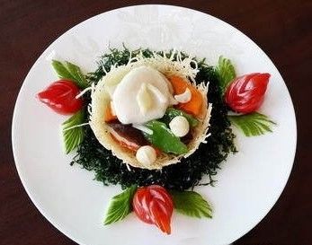 煎焖雪花牛 采用大连的雪花牛,烹调手法中西合璧,既用西式的黑胡椒、白兰地煎烹,又采用了中式焖制,还从营养角度配了秋葵、酸黄瓜和草莓三种蔬菜、水果。 夏果炒鲜带 中国美食既讲究“色香味”,也讲究形美。这些菜肴姹紫嫣红,摆放也颇有意味。例如鲜带摆在土豆丝作成的“雀巢”上,就取自成语“筑巢迎凤”。 豉香比目鱼 考虑到整个菜单的口味色彩,采用中式腌制西式低温生考的烹调手法,主张肉质鲜嫩与汤汁的调配,豆豉的运用更是极具中国美食的特色。 丝瓜青豆瓣 将丝瓜去皮切块,用7成油温走油,待用;油锅去锅,加入青豆瓣爆炒至香,再加入丝瓜,翻炒调味,勾芡装盘即可。 丝瓜青豆瓣,展现了江南的清新气质,蚕豆和丝瓜在种植过程中不需要喷洒农药,是立夏后最好的时令蔬菜。 点心 印糕、葛粉、四喜素饺中式江南小食三款,用小蒸笼盛上,本乡本土,色泽素雅,红加仑点缀秀美,很是养眼。 水果 采用2公斤重抽气冰块凿雕成水晶果盘,内放优质瓷盘,配以多样低糖新鲜水果,上桌时在底盆间衬托一朵透明粉色荷花花瓣,在华灯下彰显美丽、动人。 甜品 有西式点心三款,香芒布丁、黑森林蛋糕和原味冰淇淋。经过反复研制、论证、试味,采用低糖无任何添加剂香料做成,是国际会议中心成熟产品,其中香芒布丁嫩滑爽口、清香别致;冰淇淋采用最优质意大利粉料和最优质低脂低糖纯牛奶研制,原料之优质,加工之精良,赢得中外宾客赞不绝口。 |