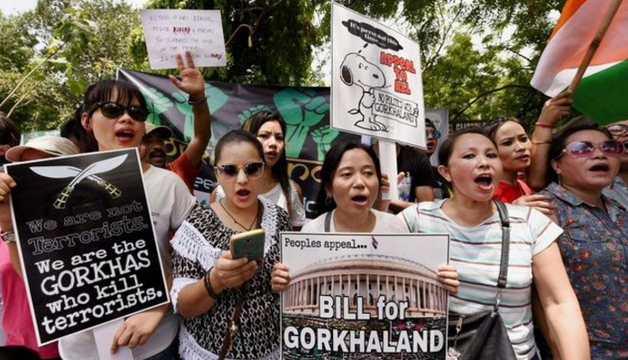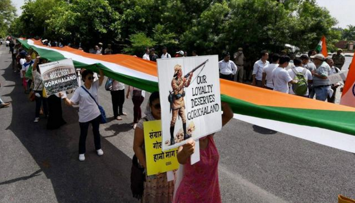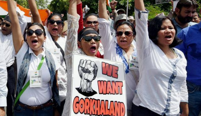 廓尔喀反政府示威组织的成员要求中央政府介入,从大吉岭地区撤出准军事部队