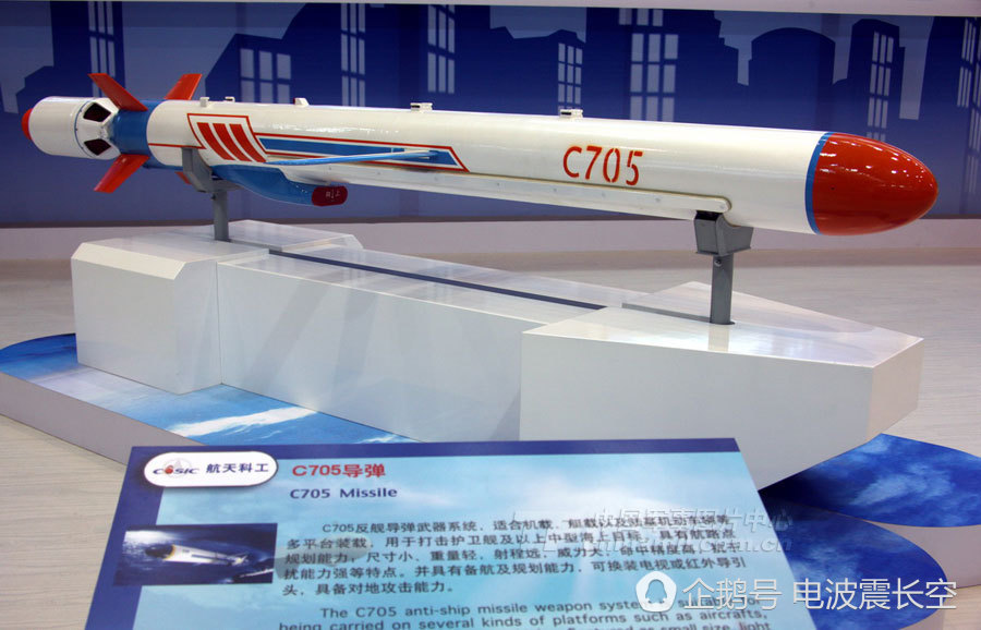 C705反舰导弹是我国航天科工集团于2008年推出的一款介于C802反舰导弹与C704小型反舰导弹之间的中偏小型反舰导弹,它的整体外形比较类似C602远程反舰导弹,但是尺寸和尾部弹翼的布置差别明显,C602尾部弹翼是+型布置的,C705是x型布置的。而在中部,C705和战斧巡航导弹一样采用了一对折叠的平直弹翼,平直弹翼在亚音速飞行状态下,有着升力大,重量轻,载油系数大的优点,能够有效扩展导弹的射程。平直弹翼、火箭助推器和窝喷发动机的组合赋予了C705超过140公里的最大射程,如果去掉火箭助推器,该弹的射程则减为75到80公里。
