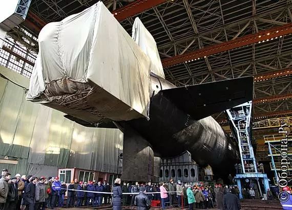 据悉,这艘弹道导弹核潜艇是该级核潜艇的第一个改进型号,排水量高达24000吨,这个排水量几乎是中国094战略核潜艇排水量的两倍,也难怪被人称作是“巨兽”。2008年,俄罗斯第一艘“北风之神”核潜艇下水,从那时开始,俄罗斯就着手建造改进型955A型核潜艇。原本该改进型955A型核潜艇是计划在2010年底开始建造,但因一些因素而遭到推迟,到2012年7月底才真正动工。
