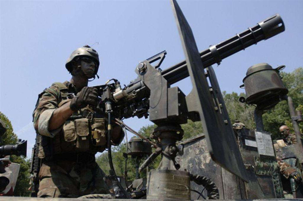 M134速射机枪,机枪全长为800毫米、最大射程为800米、最大的射击速度为每分钟6000发子弹。