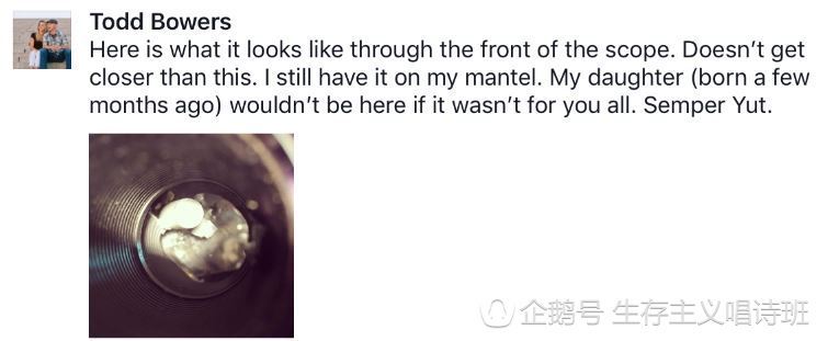 战争片中经常有这样的桥段:敌我双方的狙击手藏在暗处生死对决,主角一颗子弹呼啸而去稳稳射穿对手的狙击瞄准镜,将正在瞄准的敌人爆头血溅当场。 电影《拯救大兵瑞恩》中的对狙场景 下一刻这名德军就遭到瞄准镜射穿爆头的命运 电影《生死狙击》中也有射穿瞄准镜打死狙击手的桥段 现实战场上,出现这种枪弹贯穿瞄准镜剧情的概率,其实比中福利彩票大奖还要低,偏偏就让一名美军陆战队小兵遇到,幸运的是他配用的战斗瞄准镜超级结实,子弹居然被卡在镜筒里让他逃过一劫。 子弹射穿瞄准镜 陶德.鲍尔斯是美军陆战一师的下士,伊拉克战争期间被派驻伊拉克的费卢杰参加治安战,此地当时属于叛军活动猖獗的“逊尼三角”核心地区,也是后来“伊斯兰国”极端势力的重要据点,对于美军士兵来说就是一个鬼门关。 伊拉克费卢杰,逊尼三角地带的底边核心 2004年,在一次前往费卢杰郊区的巡逻中,鲍尔斯所在的小队被反美武装伏击,陆战队员也用步枪和单兵武器反击,双方持续驳火几个小时。就在鲍尔斯用M16A2步枪开火时,一颗子弹飞来,准确地打进了他的步枪配装的瞄准镜。 “枪在我手里突然炸开了”,这是鲍尔斯唯一留下的印象,他并没有反应过来这一颗子弹有多险。子弹打穿瞄准镜,镜筒和弹头的碎片爆开,打在士兵脸上划出不少口子,还好他当时戴了防护眼镜,眼睛没有被打伤。军医在现场取出一些碎片,替鲍尔斯包扎止血后,这名下士又端起步枪继续还击——枪战持续了四个多小时,没有那么多功夫去瞎琢磨。 子弹恰好贯穿M16A2步枪上的瞄准镜,却卡在里面,还好不是去掉提把的M16A4步枪 老爹最值当的投资 当天返回营地后,鲍尔斯仔细检查破损的瞄准镜,才发现里面竟然卡着一颗弹头。 镜筒里的弹头屁股清晰可见 这台瞄准镜是鲍尔斯的老爸专门买来送给儿子的,老鲍尔斯也是一名陆战队老兵,他认为儿子上阵必须配备最好的武装,所以在儿子出征前两天花了一千多美金专门订购了一台“先进战斗枪瞄”(ACOG)。 这款镜子价格不菲,但相当扛造 这款美国Trijicon公司生产的低倍率枪瞄相当有特色。一体铸造的铝合金外壳非常厚实像一层铠甲,易碎的镜筒镶嵌在铝壳内部。ACOG瞄准镜用一支红色光纤把日光引入瞄准镜,给十字线提供照明。这种专利设计的好处多多,在白天十字线中央的光点也非常显眼鲜明,而且光纤照明本身不依赖电能,传统瞄准镜镜筒外部乱七八糟的调焦环和电池盒全部都可以取消。 光纤照射的亮点异常明亮 如果镜片在极端条件下摔碎,士兵还可以用ACOG瞄准镜顶部的简易准星来瞄准射击。很多用家甚至认为Trijicon ACOG瞄准镜拿来当锤子砸核桃也没问题。ACOG瞄准镜1980年代末第一次被特种部队带到巴拿马打仗,之后跟随三角洲部队经历了沙漠风暴和黑鹰坠落,目前已经成为普通步兵单位的标配。 鲍尔斯在推上汇报喜得一女的近况,这台镜子作为救命神器供在他家的壁炉上 不过,十多年前的鲍尔斯还需要自己老爸掏腰包购置枪瞄,但大家都觉得这笔钱花得超值——眼下前陆战队下士鲍尔斯出生不久的闺女已经快要学走路,那台救了他一命、,弹头还卡在镜筒里的瞄准镜,则装在壁炉的木架子上作为宝贝陈列。 武器的性能关系着军人性命,虽迷信也在所不惜。图为俄军神父给步枪开光 |