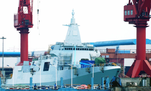 图片为中国2017年下水的首艘055型导弹驱逐舰,实际上在上海江南造船厂和大连造船厂的大型船坞内,还有至少5艘同型号舰艇已经在船台上,预计2018年将有2至3艘055型导弹驱逐舰下水,应该说,2017年中国海军建设发展速度依然没有减速的迹象,相反中国海军舰艇的建造速度和频率正在进一步加强,据外国媒体透露,2017年,中国下水052D型和055型导弹驱逐舰各一艘,导弹驱逐舰入列两艘(“西宁”号和“厦门”号),在建导弹驱逐舰10艘,而美国海军2017年全年下水导弹驱逐舰2艘,入列3艘,保持了最近10年的驱逐舰更新频率,目前在建驱逐舰7艘,而日本海上自卫队仅下水一艘朝日级导弹驱逐舰“不知火”号,在建2艘。并交付海上自卫队“加贺”号直升机母舰一艘,苍龙级“赤龙”号常规动力潜艇一艘,目前海上自卫队6000吨级以上主力作战舰艇数量仍高于我军,但由于其更新速度太慢,2020年将被我军超越。