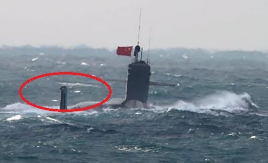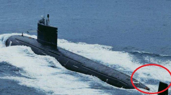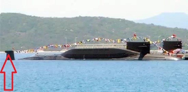 海外媒体发表的093B攻击核潜艇图片,注意红圈处整流罩