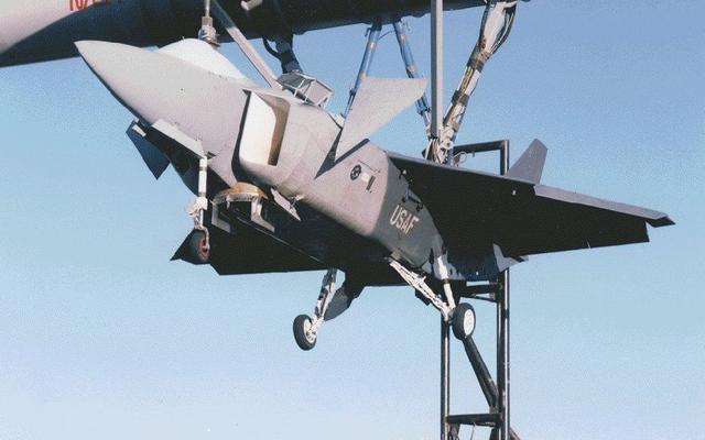 图为洛克希德-马丁在"联合先进攻击技术"(JAST)研究中拿出的的C160验证机。该研究由海军在1993年开始,为的是在"先进雄猫"和A-12等"黑科技项目"下马之后,为海军的下一代战机研发找到方向。该研究计划在1994年前后与美国空军、海军陆战队的"可负担轻型战斗机"(CALF)合并,最终从中诞生了X-32和X-35两款战机,而后者便是F-35机族的原型。